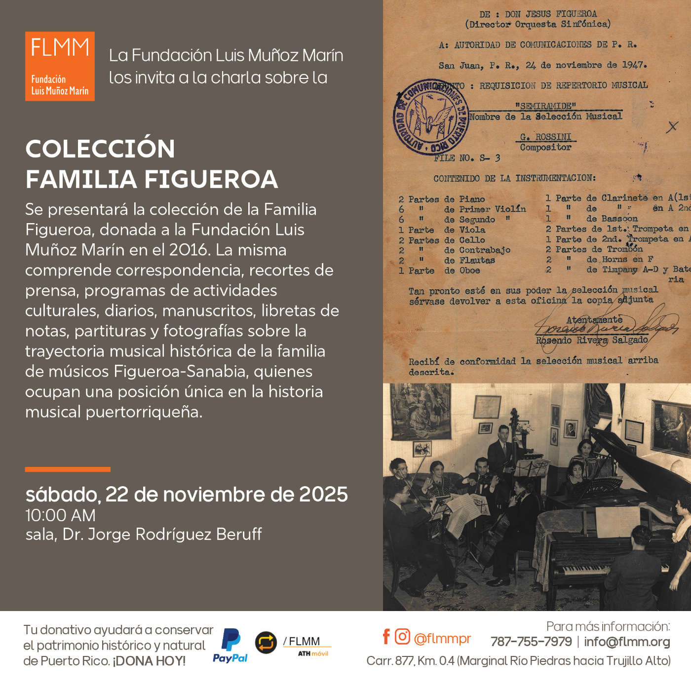 La Fundación Luis Muñoz Marín (FLMM) es una institución sin fines de lucro incorporada en 1980. En líneas generales, la Fundación promueve el estudio de la historia contemporánea de Puerto Rico, la discusión de temas de actualidad que sean de interés público, la conservación del medio ambiente y los recursos naturales en Puerto Rico y el Caribe y cualquier manifestación cultural que propicie el gusto por las bellas artes. Nuestra misión se centra en ayudar a construir el porvenir de Puerto Rico, preservando, actualizando y difundiendo los valores, filosofía y pensamiento de Luis Muñoz Marín y promoviendo su aplicación a la identificación y solución de los problemas principales del país.